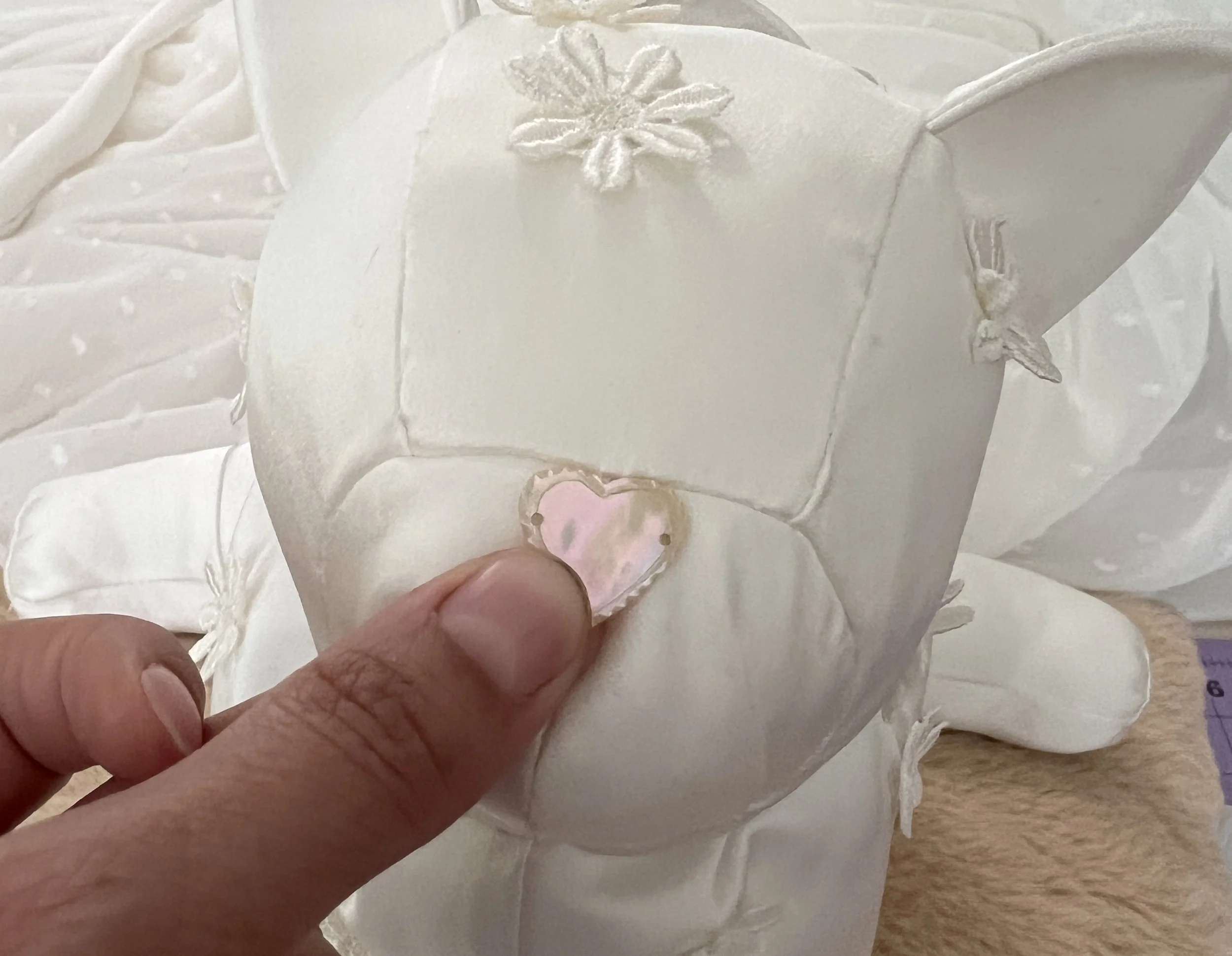 When sewing on the bottoms of the paws, which are perfect circles, it's really hard to get it under your sewing machine foot and be accurate. I hand sewed them on with a running stitch (short stitches, not basting) and then machine stitched. This went faster than the one I tried to do without hand sewing (seam ripper was involved).